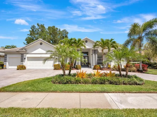 Grey Oaks Perfection! This beautifully reimagined, and professionally decorated three-bedroom plus den home is ready for you to move right in. An inviting, vast and open floor plan transitions seamlessly to an outdoor oasis of tropical landscaping surrounding your private pool. And, this is all made better with a southwestern facing lot.