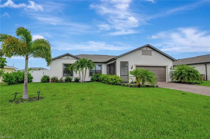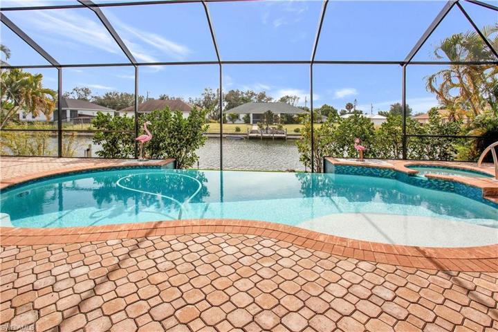 Paradise is calling…start living the ultimate Florida Lifestyle in this gorgeous new listing!!! With its fantastic South Cape Coral location, spacious pool + patio and lush landscaping this home is a must see. This property features 3 bedroom, two bath, two car side loading garage and wood burning fireplace.