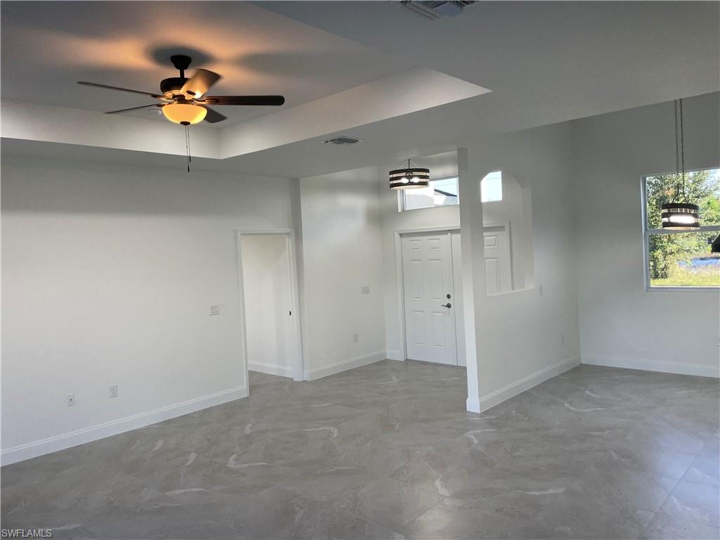 This beautiful new construction home offers an open floor plan with 3 bedrooms, 2 bathrooms, and a 2-car garage. Enjoy the spacious lanai and numerous upgrades, such as porcelain tile floors, 9-foot ceilings with tray accents, and upgraded lighting. The gourmet kitchen boasts white wood cabinets, a kitchen island, stainless steel appliances, and quartz countertops. Sliding glass doors in the living area lead to the outdoors. The master suite bathroom features double sinks, a walk-in shower, and two walk-in closets. It is located in a great southside Lehigh Acres neighborhood with easy access to Fort Myers, schools, and shopping centers. Don’t miss this opportunity – make an offer today!